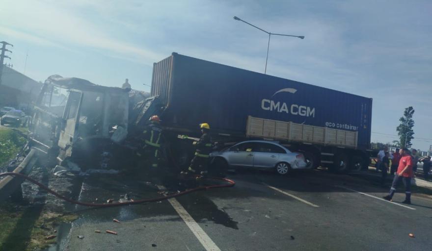 Según testigos ocasionales que pasaban por el lugar, relataron que no de los camiones circulaba en dirección a Rosario cuando, por motivos que aún se desconocen, perdió el control, se despistó y cruzó de carril, impactando de lleno contra otro camión que venía en sentido contrario, hacia la Capital. En ese movimiento arrastra al Citroën, e impacta de lleno con una Partner. Y allí, desde atrás colisiona otro rodado de carga y el fuego se desató de inmediato.