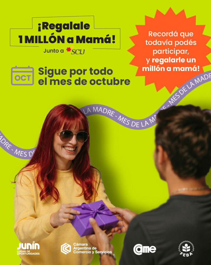 La Sociedad Comercio e Industria de Junín (SCIJ) recuerda que la acción comercial “Regalale un millón a Mamá” continúa vigente hasta el viernes 31 de octubre inclusive.