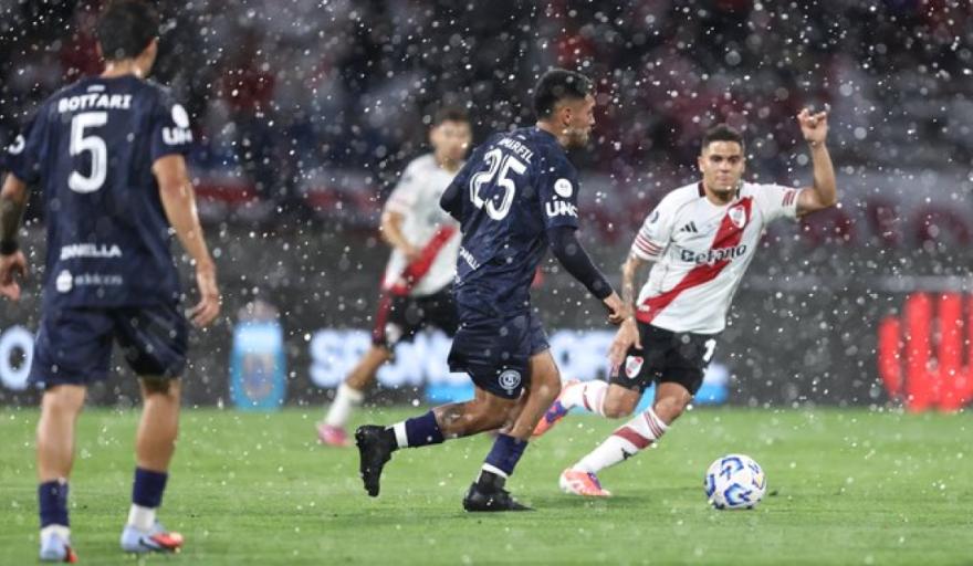 Antes de iniciarse el segundo tiempo, el partido se vio demorado unos 45' por las fuertes lluvias y los importantes charcos en el campo de juego.