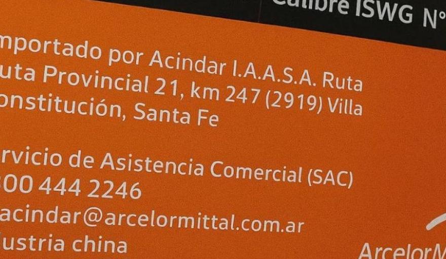 Una imagen de una etiqueta de venta reciente de Acindar que pudo conseguir InfoGremiales en exclusiva, señala que el material comercializado es de Origen China y que además, el importador directo es la propia Acindar. Toda una señal de alarma para los operarios que antes producían ese mismo material en el país y que por estas horas están suspendidos.