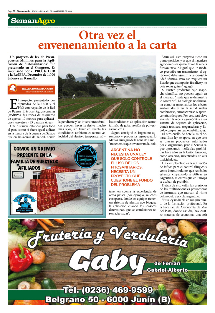 SECCIÓN SEMANAGRO PUBLICADA EN LA EDICIÓN IMPRESA Y EDICIÓN DIGITAL Nº 486 DE SEMANARIO DE JUNÍN. SEMANA DEL 1 AL 7 DE NOVIEMBRE DE 2025