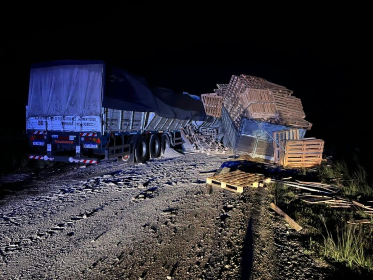 Instantes después, un Fiat Iveco (TJA 085) que venía detrás se sumó involuntariamente al desastre. El vehículo terminó volcado sobre la cinta asfáltica y su carga se desparramó por toda la calzada.