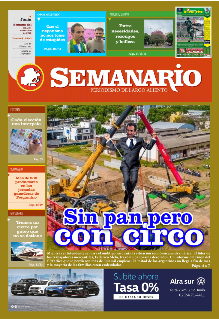 NOTA DE TAPA PUBLICADA EN LA EDICIÓN IMPRESA Y EDICIÓN DIGITAL Nº 485 DE SEMANARIO DE JUNÍN. SEMANA DEL 25 AL 31 DE OCTUBRE DE 2025