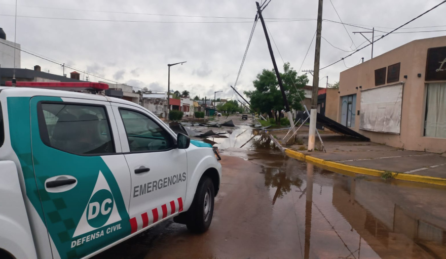 Por otra parte, el servicio eléctrico en la localidad se mantenía interrumpido como medida preventiva ante la caída de postes en diferentes lugares. También se registró pérdida de gas en una vivienda, lo que requirió el trabajo de Bomberos Voluntarios y la empresa Camuzzi.