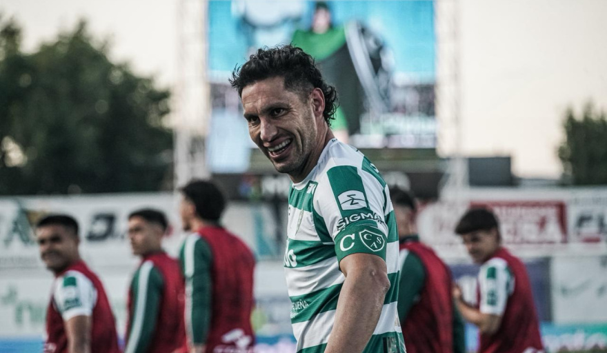 Juan Manuel García festeja el segundo gol del Verde a los pocos minutos del marcado por el Chaco Insaurralde