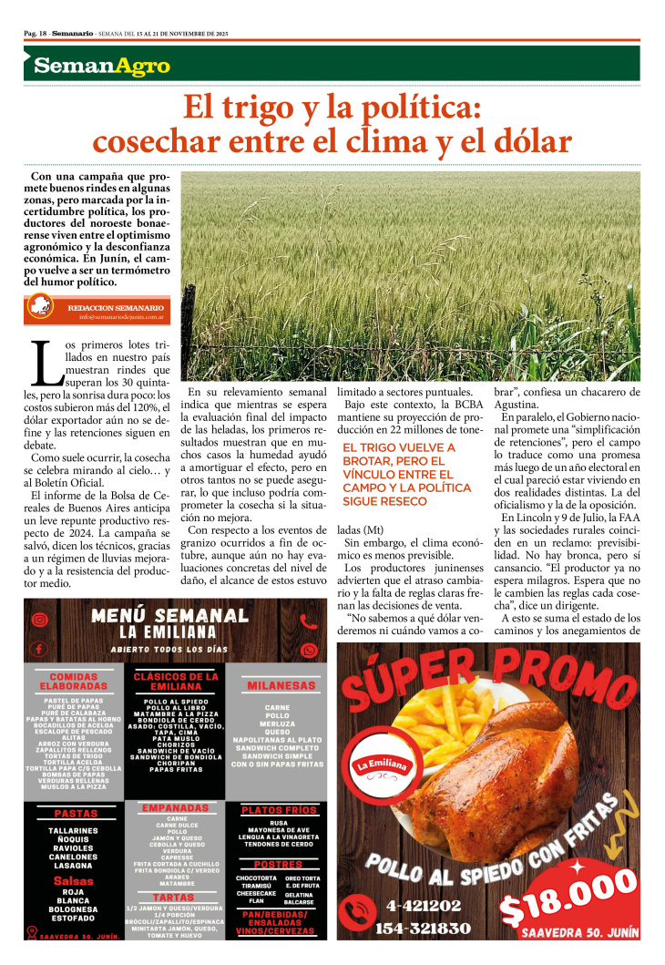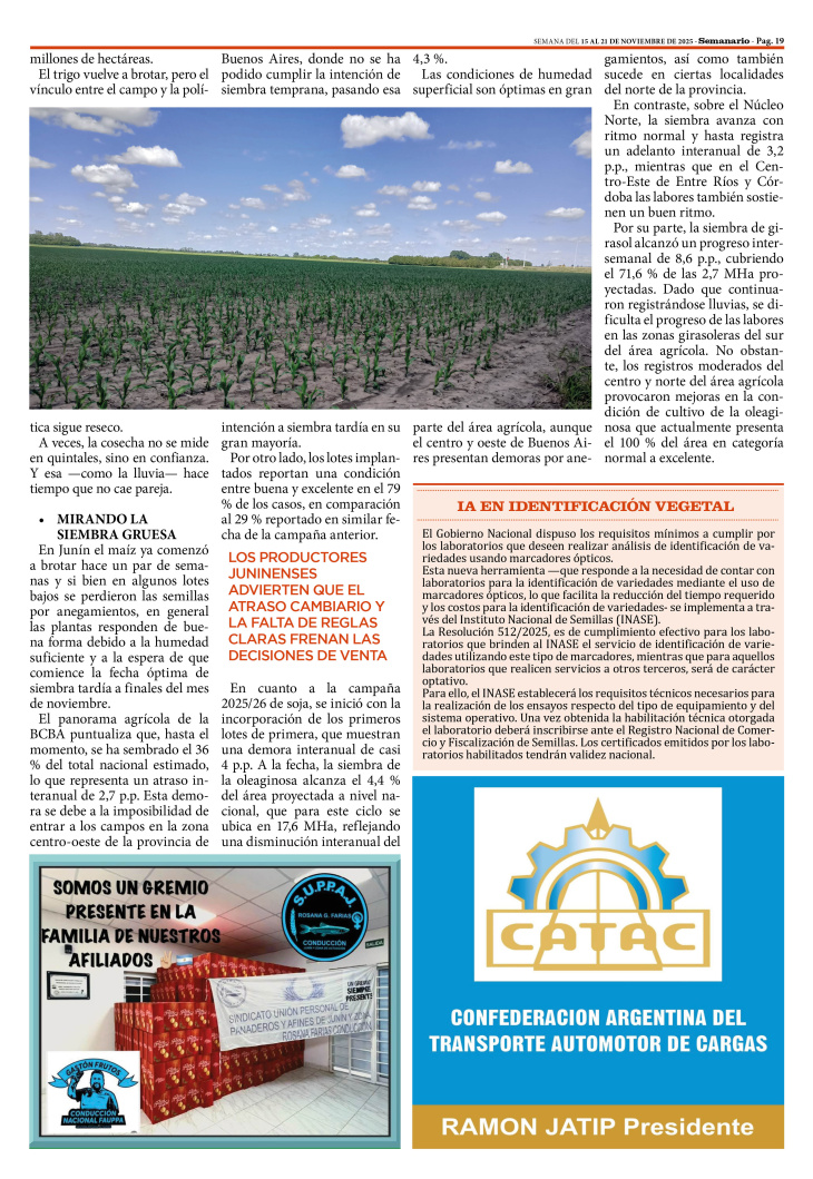 SECCIÓN SEMANAGRO PUBLICADA EN LA EDICIÓN IMPRESA Y EDICIÓN DIGITAL Nº 488 DE SEMANARIO DE JUNÍN. SEMANA DEL 15 AL 21 DE NOVIEMBRE DE 2025