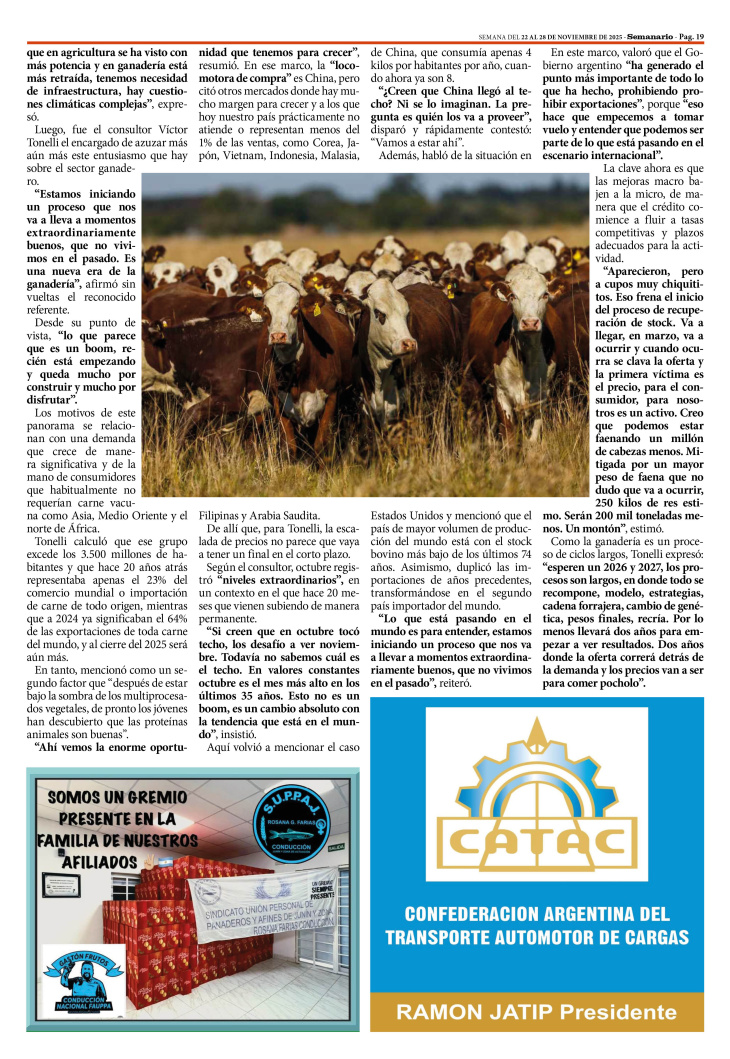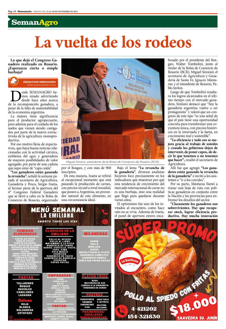 SECCIÓN SEMANAGRO PUBLICADA EN LA EDICIÓN IMPRESA Y EDICIÓN DIGITAL Nº 489 DE SEMANARIO DE JUNÍN. SEMANA DEL 22 AL 28 DE NOVIEMBRE DE 2025