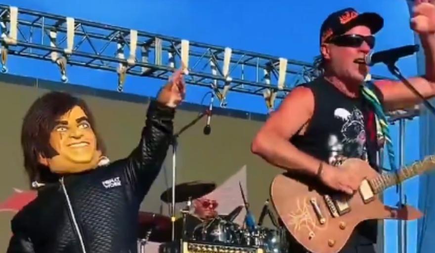 El doble, que imitaba los gestos del mandatario, saltó y bailó junto al vocalista, Chizzo, generando un momento de burla que fue registrado por los fanáticos y rápidamente se viralizó en las redes sociales.