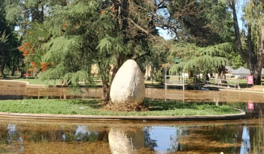 Un misterioso huevo gigante en el parque municipal genera intriga en la población