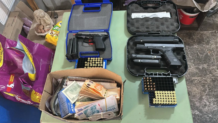 Con esto, se desarticuló una estructura dedicada al tráfico de estupefacientes. En estos allanamientos, se incautaron 53 panes de cocaína (aproximadamente 52 kilos), droga fraccionada lista para su venta en al menos siete puntos de distribución, cerca de 60 mil dólares, más de 55 millones de pesos en efectivo, 13 armas de fuego, alrededor de 800 municiones de distintos calibres y, además, vehículos, teléfonos, dispositivos electrónicos, documentación contable y otros elementos clave.