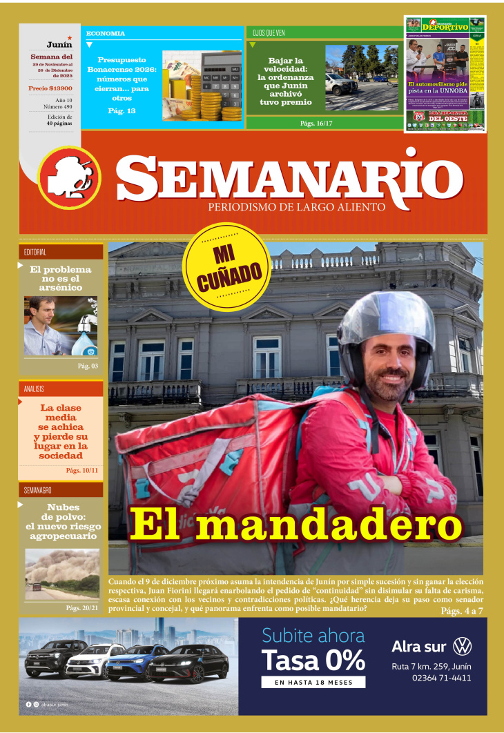 NOTA DE TAPA PUBLICADA EN LA EDICIÓN IMPRESA Y EDICIÓN DIGITAL Nº 490 DE SEMANARIO DE JUNÍN. SEMANA DEL 29 DE NOVIEMBRE AL 5 DE DICIEMBRE DE 2025