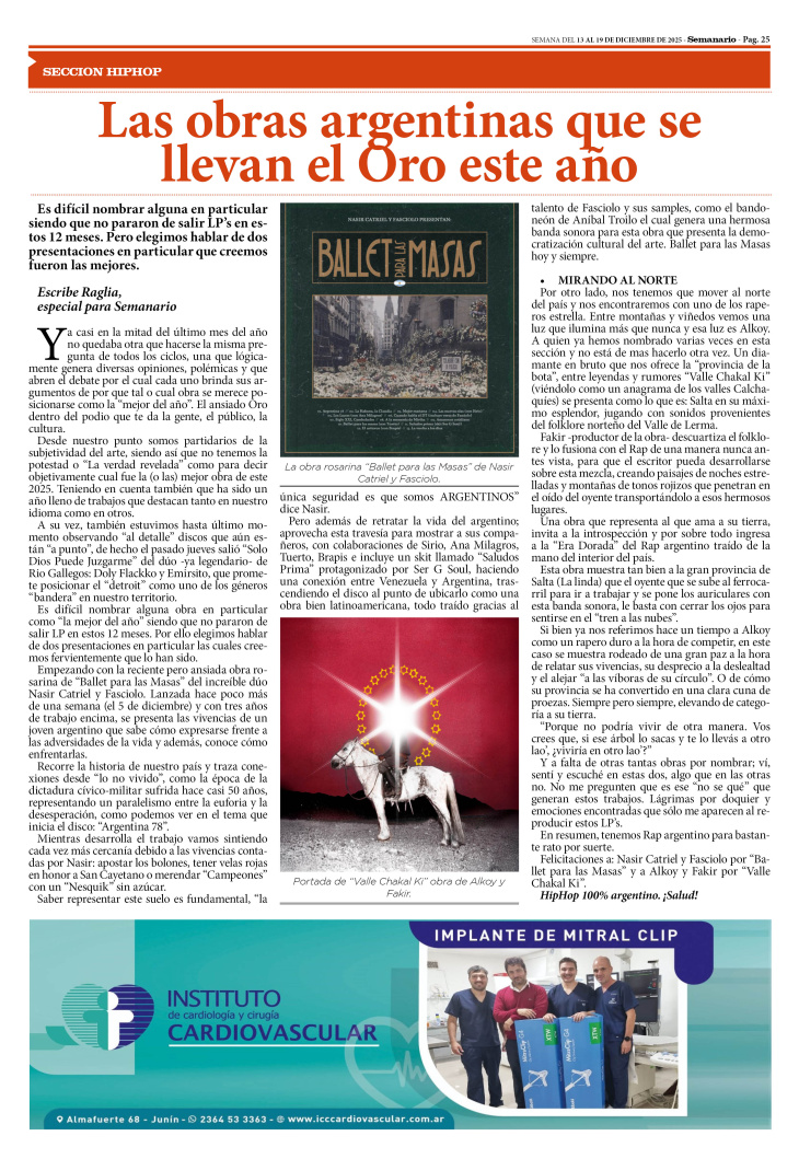 SECCIÓN HIP HOP PUBLICADA EN LA EDICIÓN IMPRESA Y EDICIÓN DIGITAL Nº 492 DE SEMANARIO DE JUNÍN. SEMANA DEL 13 AL 19 DE DICIEMBRE DE 2025