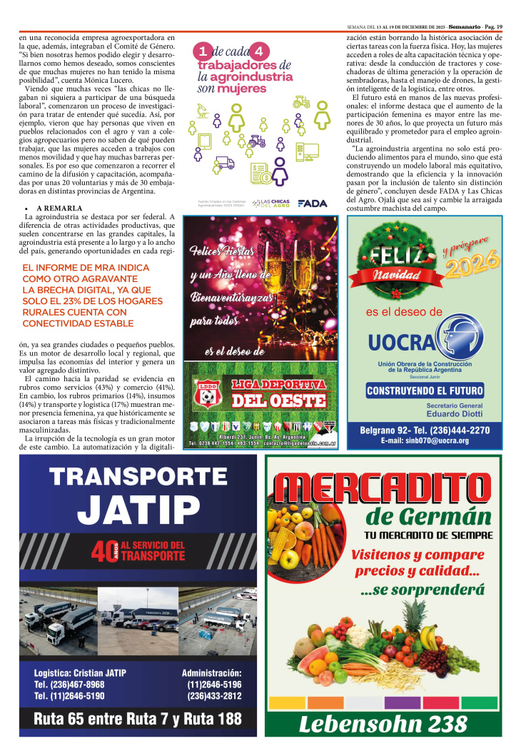 SECCIÓN SEMANAGRO PUBLICADA EN LA EDICIÓN IMPRESA Y EDICIÓN DIGITAL Nº 492 DE SEMANARIO DE JUNÍN. SEMANA DEL 13 AL 19 DE DICIEMBRE DE 2025