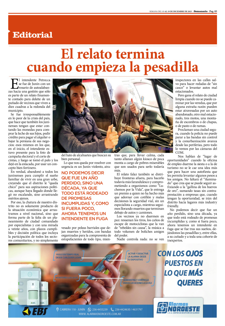 EDITORIAL PUBLICADO EN LA EDICIÓN IMPRESA Y EDICIÓN DIGITAL Nº 492 DE SEMANARIO DE JUNÍN. SEMANA DEL 13 AL 19 DE DICIEMBRE DE 2025