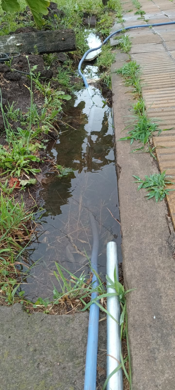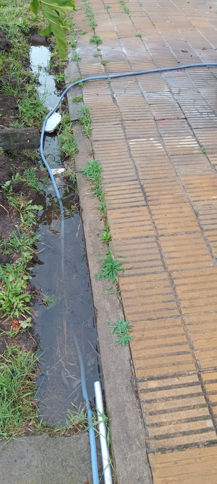 El resultado, escombros en la pista, cableados llevando energía eléctrica en zanjas repletas de agua, conexiones absolutamente precarias, riesgos mayúsculos para el personal y las personas que circulen por allí considerando que es un lugar público.