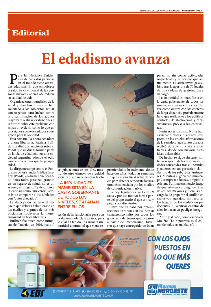 EDITORIAL PUBLICADO EN LA EDICIÓN IMPRESA Y DIGITAL Nº 493 DE SEMANARIO DE JUNÍN. SEMANA DEL 20 AL 26 DE DICIEMBRE DE 2025