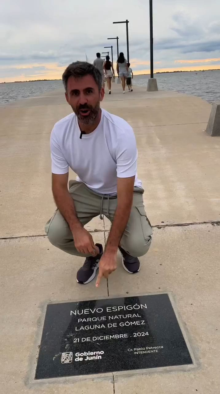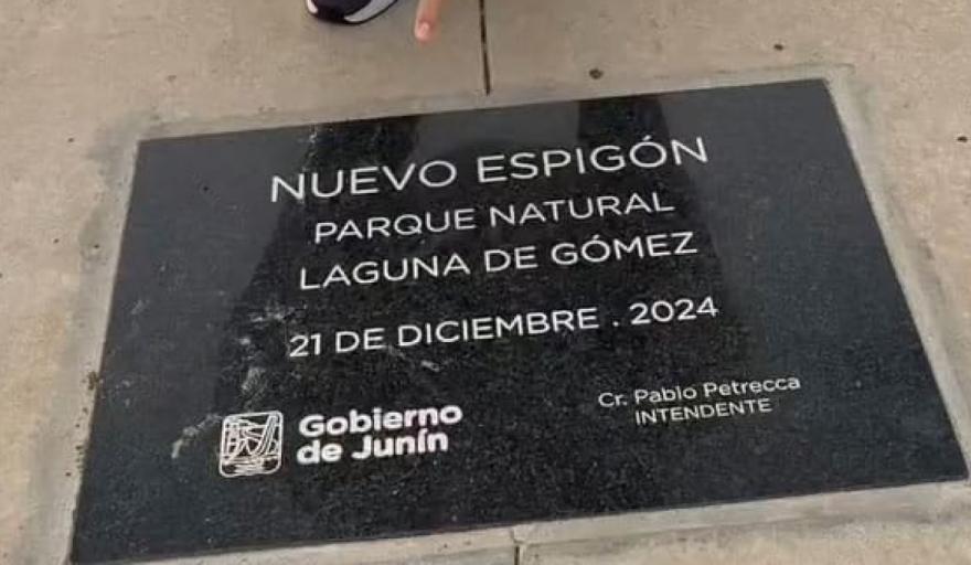 En la apertura de la temporada turística 2026 del Parque Natural Laguna de Gómez, Juancito Fiorini, a cargo temporalmente de la intendencia, se filmó en un video para las redes sociales mostrando la placa conmemorativa que se colocó en el espigón del balneario tras su reconstrucción, una obra financiada por el gobierno provincial y que el Ejecutivo municipal tardó más de siete años en llevar adelante, luego de clausurarlo intempestivamente a su llegada al gobierno hace exactamente 10 años.