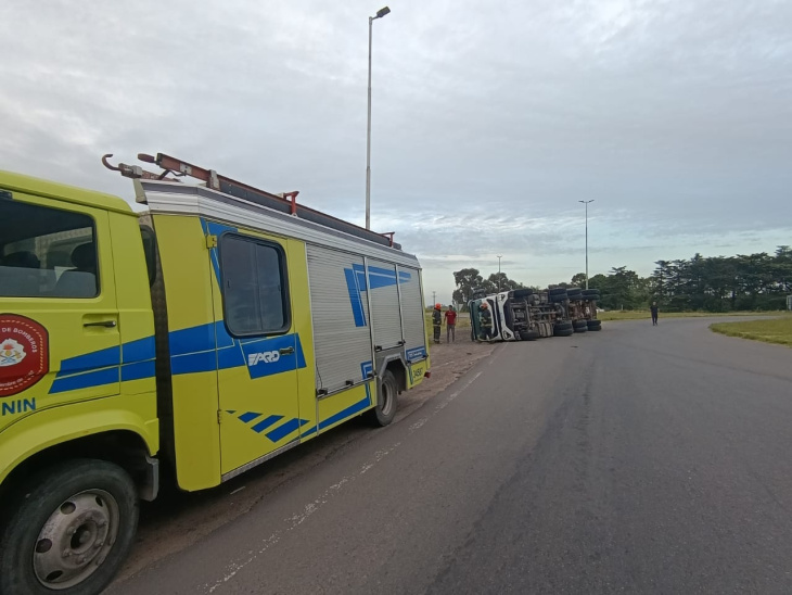 Este sábado, alrededor de las siete volcó un camión con acoplado en la rotonda de las rutas 188 y 65, en inmediaciones de Junín. Por fortuna, el conductor salió por sus propios medios y no tuvo lesiones.