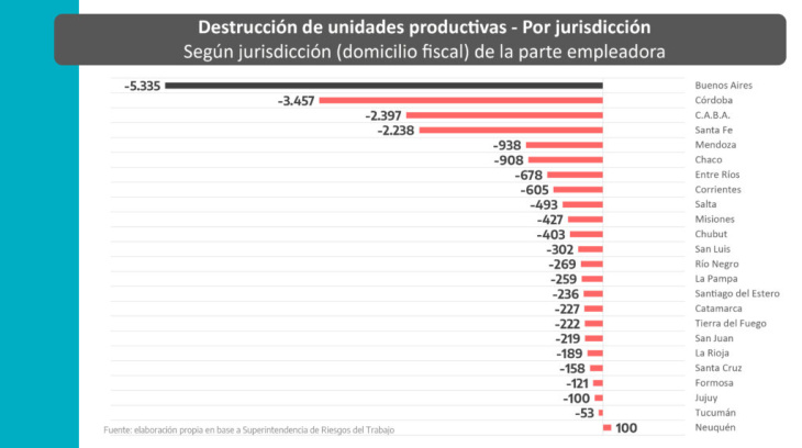 “Aunque el impacto fue generalizado —con la excepción de Neuquén—, la PBA concentra más daño por su estructura productiva: aporta casi el 50% del valor industrial del país” explicó el funcionario provincial, quien recodó que 3 de cada 10 empresas que cerraron en el país estaban instaladas en territorio bonaerense.