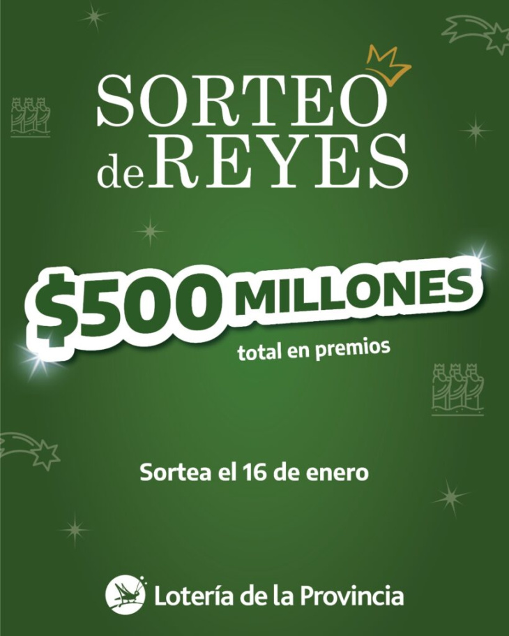 Este viernes Lotería de la Provincia sorteará el billete Reyes que en su edición 2026 ofrecerá más de $500 millones en premios. Desde las 21:00 se llevará a cabo el tradicional sorteo que repartirá un total de $503.880 millones en premios y podrá seguirse en vivo por Youtube.