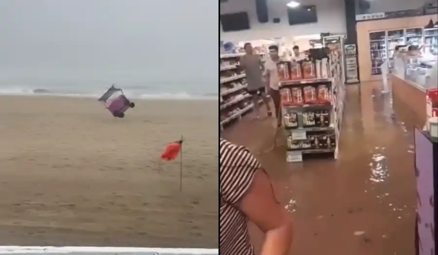 Las rachas de viento eran tan intensas que un usuario publicó el video de un carro de comida de vendedor ambulante rodando por la playa.