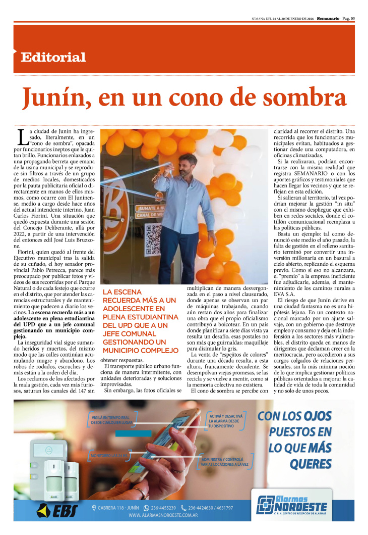EDITORIAL PUBLICADO EN LA EDICIÓN IMPRESA Y EDICIÓN DIGITAL Nº 498 DE SEMANARIO DE JUNÍN. SEMANA DEL 24 AL 30 DE ENERO DE 2026