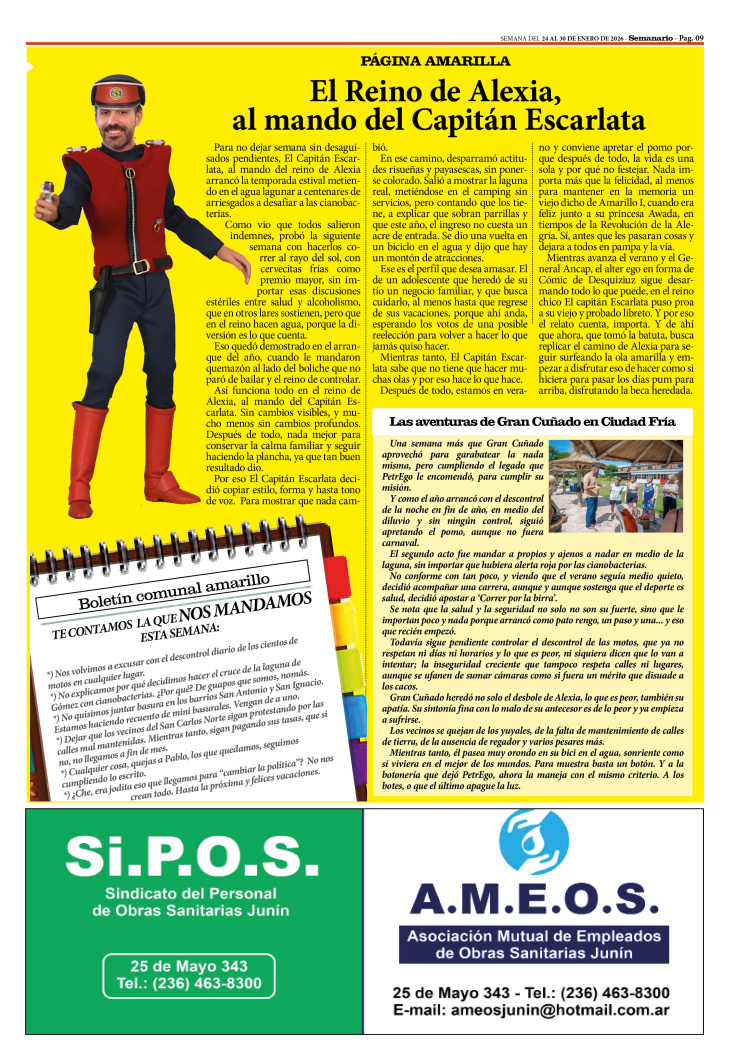 PÁGINA DE HUMOR PUBLICADA EN LA EDICIÓN IMPRESA Y EDICIÓN DIGITAL Nº 498 DE SEMANARIO DE JUNÍN. SEMANA DEL 24 AL 30 DE ENERO DE 2026