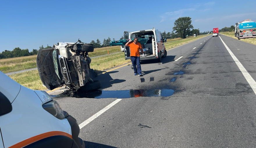 Un grave siniestro vial se registró este miércoles a la tarde en el km 242 de la ruta 7 cuando, por razones que se desconocen, una pick up Toyota volcó sin otro vehículo interviniente y provocó lesiones de distinta consideración a sus cuatro ocupantes.