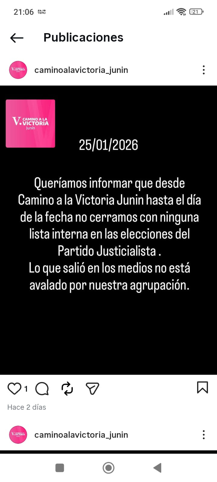 Respecto a la interna del partido Justicialista, el dirigente y ex precandidato a intendente puntualizó que desde su organización llevan a cabo “una intensa tarea como parte del esquema del Gobernador Axel Kicillof dentro del Movimiento Derecho al Futuro (MDF)” y como uno de los representantes en Junín “del armado de la diputada nacional Victoria Tolosa Paz referente de ‘Camino a la Victoria’, afirmando que “por el momento no formamos parte de ninguna de las listas internas dentro del Partido Justicialista y hago esta aclaración ya que en un medio local, indicaron que “Camino a la Victoria” apoyaba la lista de la compañera Cristina Tejo, lo cual no es cierto”.