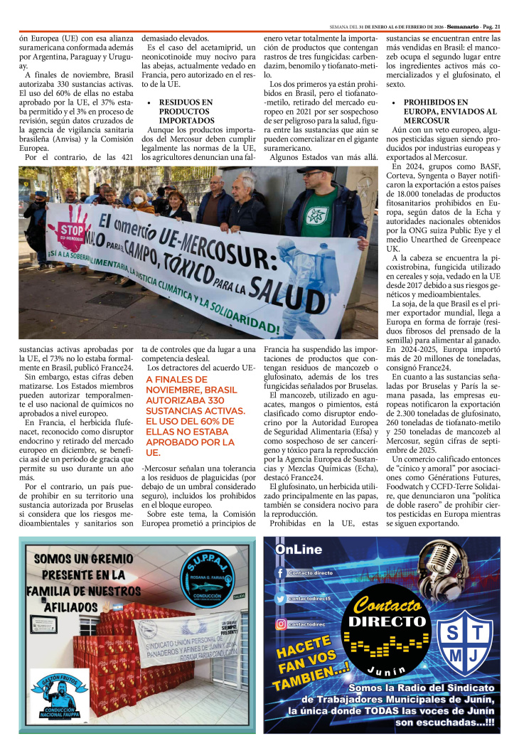 SECCIÓN SEMANAGRO PUBLICADA EN LA EDICIÓN IMPRESA Y EDICIÓN DIGITAL Nº 499 DE SEMANARIO DE JUNÍN. SEMANA DEL 31 DE ENERO AL 6 DE FEBRERO DE 2026