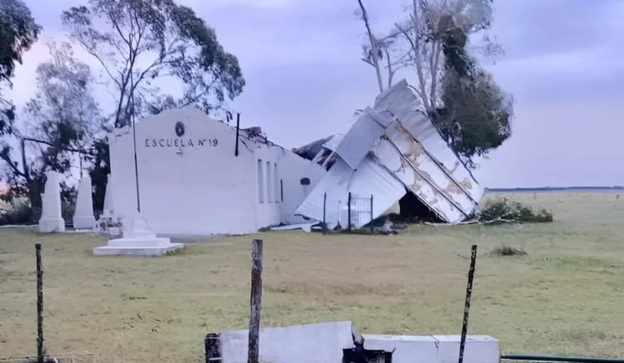 En tanto, en el paraje La Noria se desprendió por completo el techo de la Escuela Primaria Nº 19.