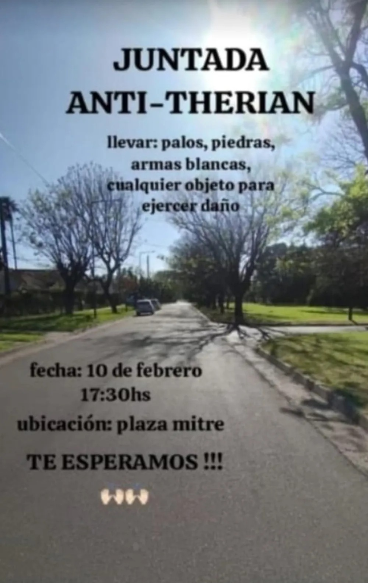 Convocatoria “anti-therian” y mensajes agresivos