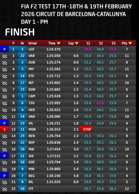Las sesiones de pretemporada para la camada 2026 de la F2 continuará el miércoles 18 y el jueves 19 de febrero. El primer turno será ambos días de 5 hasta las 8 de la mañana de Argentina, mientras que las sesiones de la tarde será de 10 a 13 el miércoles y de 9 a 12 el jueves.