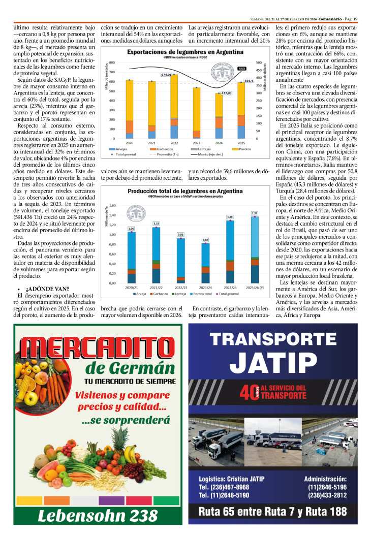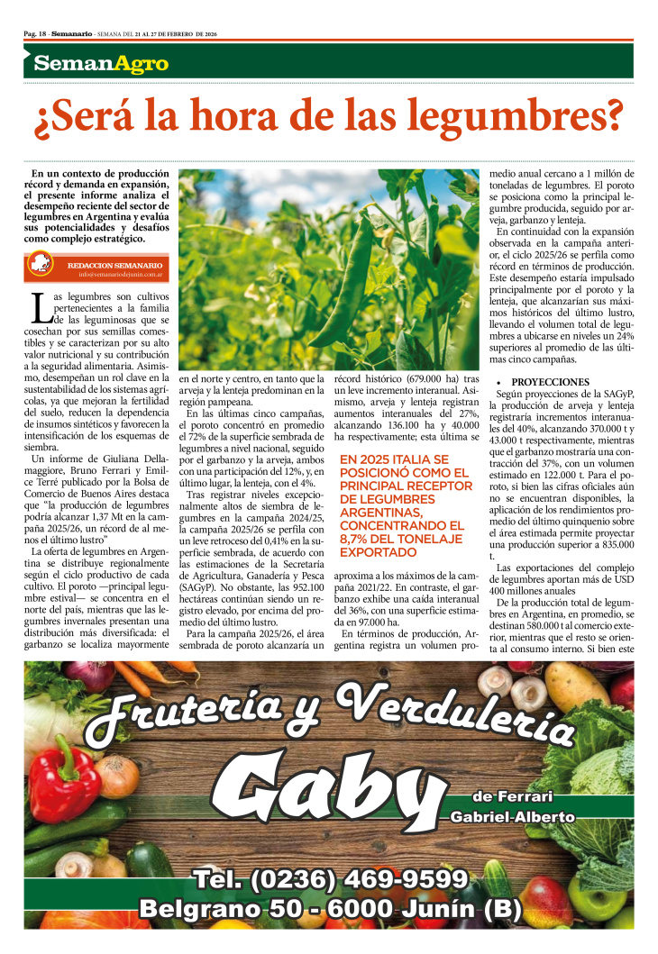 SECCIÓN SEMANAGRO PUBLICADA EN LA EDICIÓN IMPRESA Y EDICIÓN DIGITAL Nº 502 DE SEMANARIO DE JUNÍN. SEMANA DEL 21 AL 27 DE FEBRERO DE 2026
