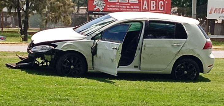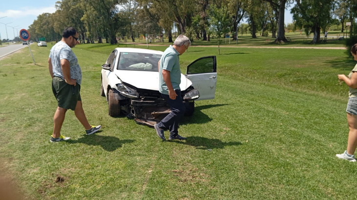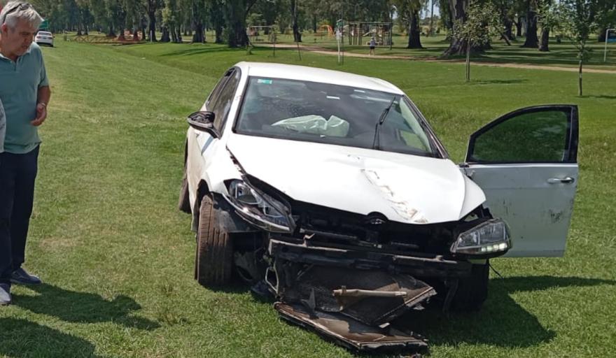 El impacto fue en exceso de velocidad, ya que el VW Golf, al venir pasado, se fue hacia la banquina, pasó por arriba del guardarraíl y quedó parado sobre su mismo lateral izquierdo con las ruedas hacia la ruta. Terminó arrancando una buena parte de la estructura metálica que protege la curva y que alcanza en el lugar unos 10 metros de longitud, sobre la mismísima Avenida Circunvalación Eva Perón.