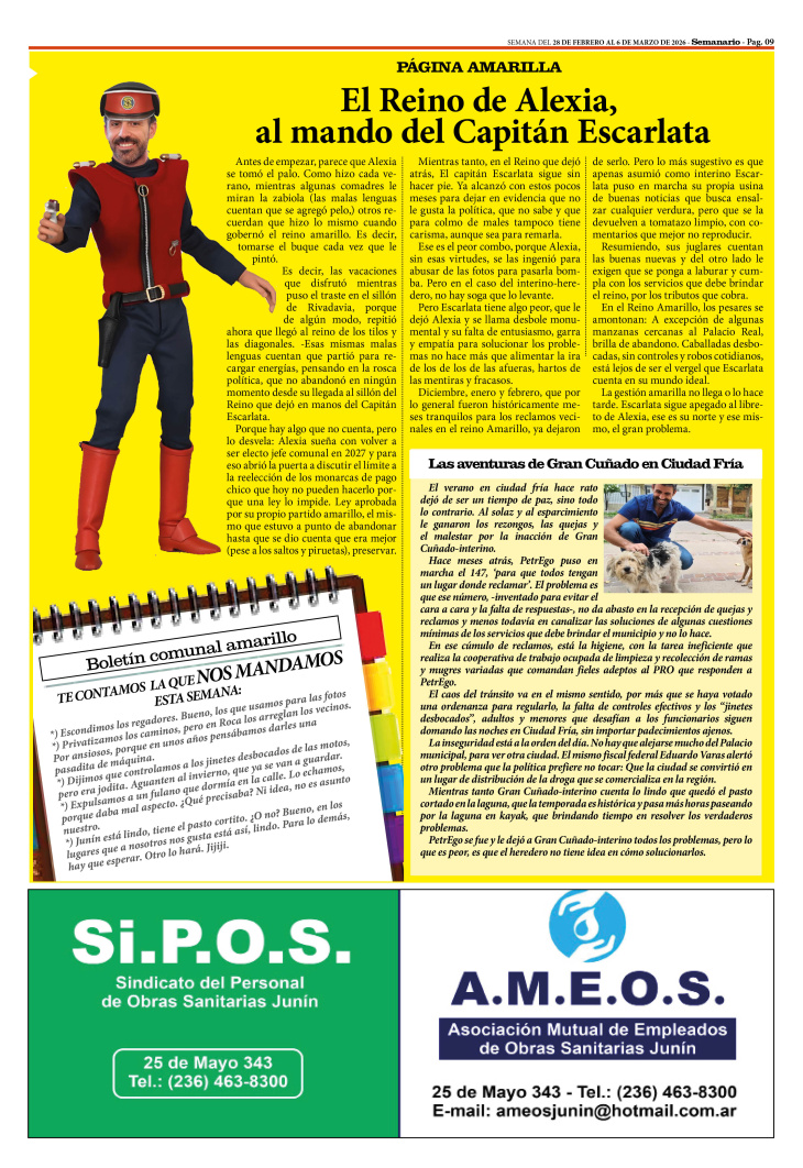 PÁGINA DE HUMOR PUBLICADA EN LA EDICIÓN IMPRESA Y EDICIÓN DIGITAL Nº 503 DE SEMANARIO DE JUNÍN. SEMANA DEL 28 DE FEBRERO AL 6 DE MARZO DE 2026,