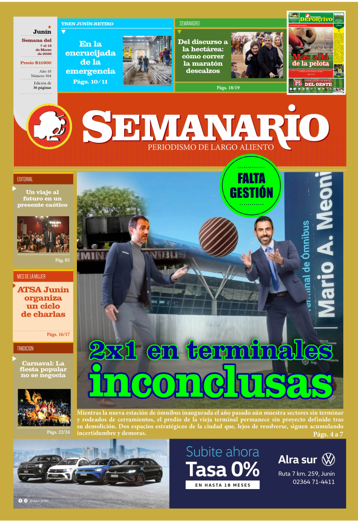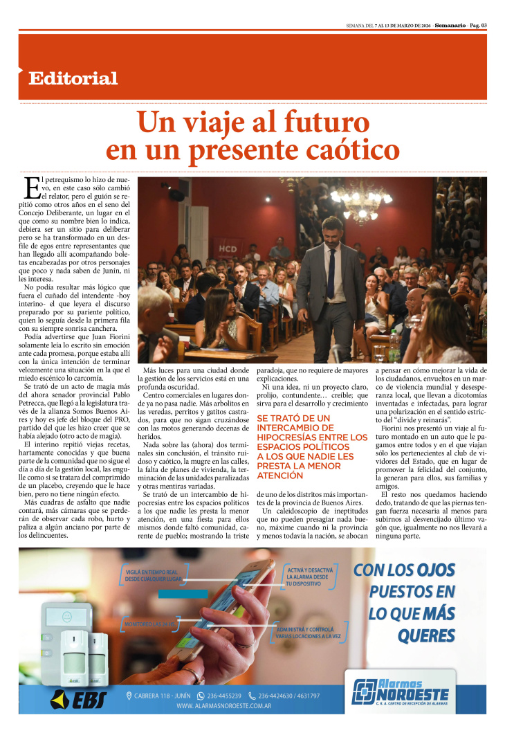 EDITORIAL PUBLICADO EN LA EDICIÓN IMPRESA Y EDICIÓN DIGITAL Nº 504 DE SEMANARIO DE JUNÍN. SEMANA DEL 7 AL 13 DE MARZO DE 2026