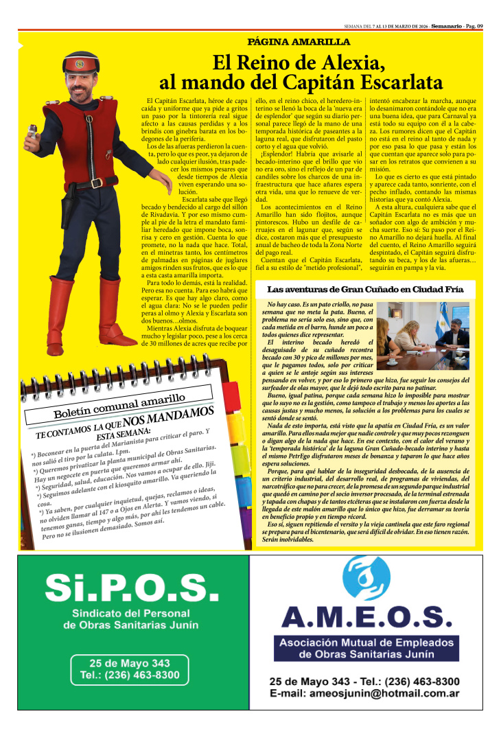 PÁGINA DE HUMOR POLÍTICO PUBLICADA EN LA EDICIÓN IMPRESA Y EDICIÓN DIGITAL Nº 504 DE SEMANARIO DE JUNÍN. SEMANA DEL 7 AL 13 DE MARZO DE 2026