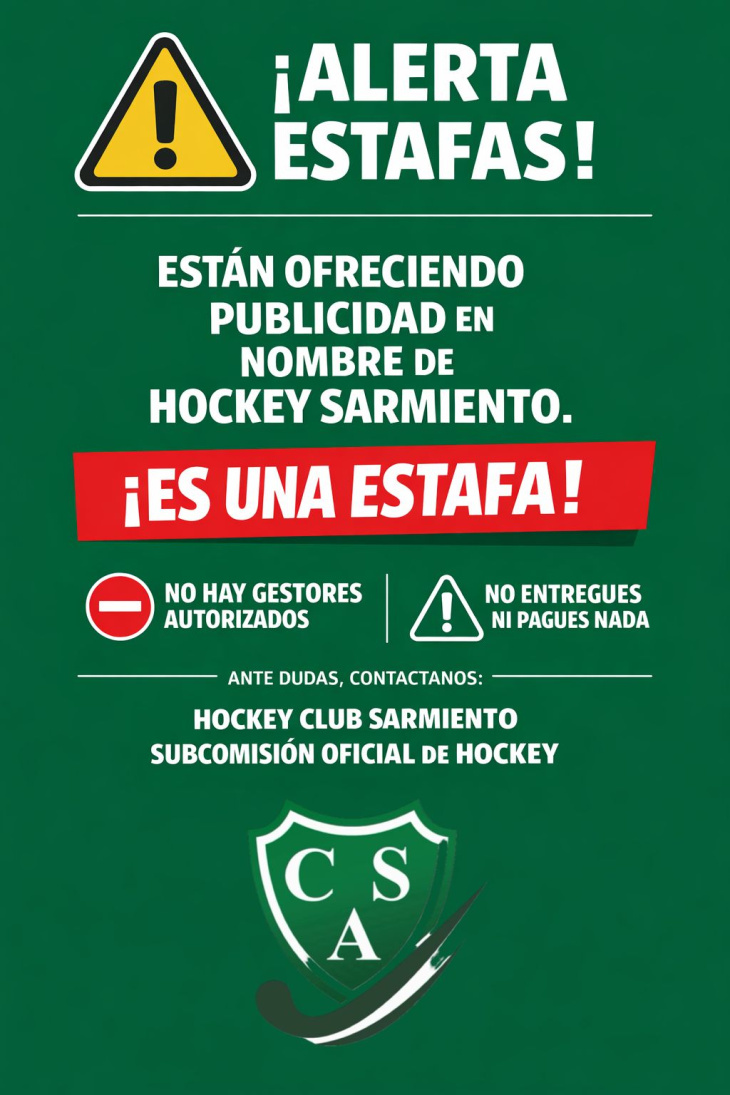 Otra vez, Sarmiento quedó en el centro de la atención por inescrupulosos que utilizan su nombre para tratar de captar incautos y engañarlos con distintos ardids. El club alertó a la ciudadanía que están ofreciendo publicidad para el hockey de la institución y llamó a estar atentos, ya que la institución no tiene gestores.