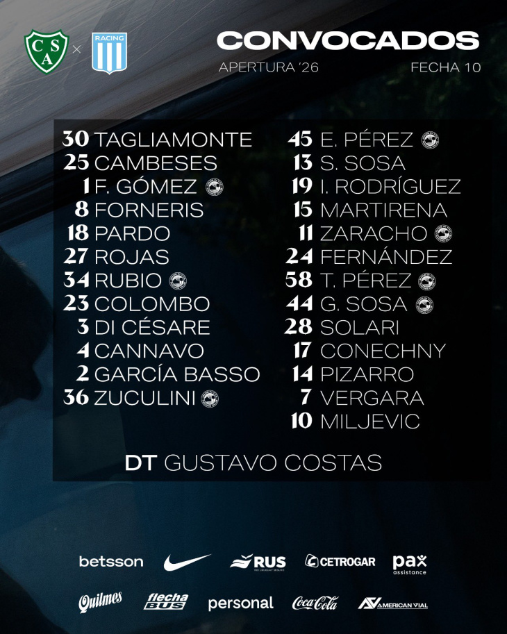 Racing difundió sus convocados, Sarmiento no.