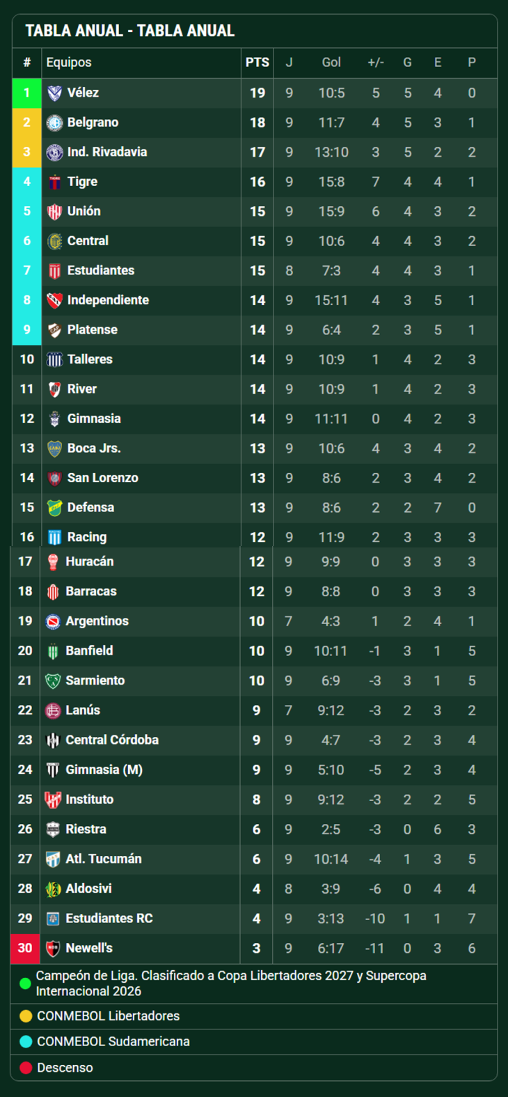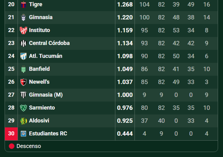 Sarmiento sumó un punto ante Racing luego de igualar 0 a 0 en el Eva Perón y en su pelea por la permanencia, sus rivales tuvieron suerte dispar y no pudieron aprovecharlo. Por caso Newell's igualó 1-1 con Platense, Banfield perdió con Gimnasia 2-1 y Aldosivi empató con Atlético Tucumán 1-1 en el José Fierro.