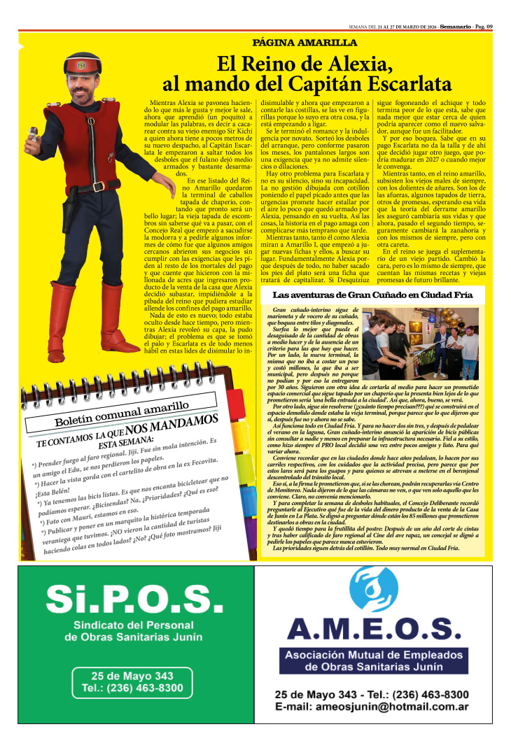 HUMOR POLÍTICO PUBLICADO EN LA EDICIÓN IMPRESA Y EDICIÓN DIGITAL Nº 506 DE SEMANARIO DE JUNÍN. SEMANA DEL 21 AL 27 DE MARZO DE 2026