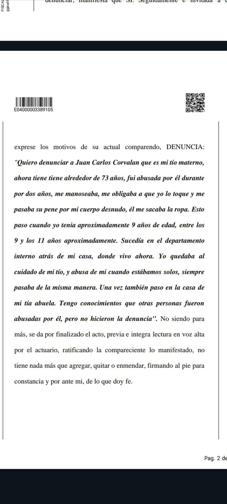 En la denuncia, la mujer contó que su tío materno abusaba de ella 'al menos por dos años cuando quedaban solos' y que todo ocurrió 'cuando tenía entre 9 y 11 años'. Según consta en la denuncia, el hombre pasaba su pene por el cuerpo de la menor, completamente indefensa.