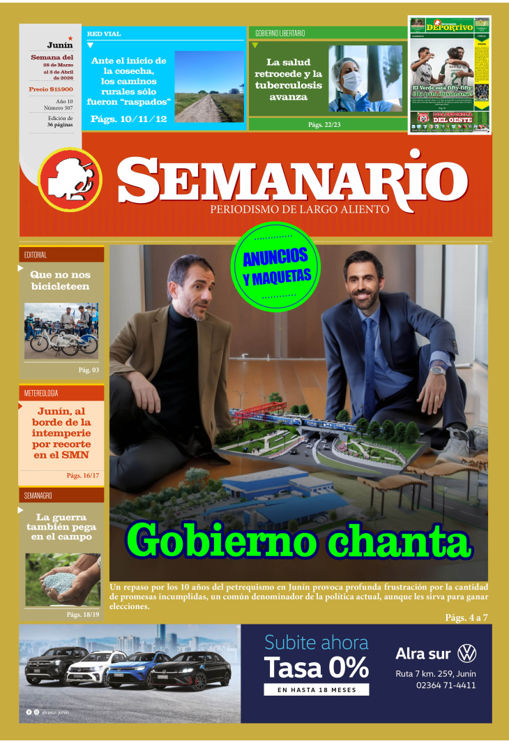 PÁGINA DE HUMOR PUBLICADA EN LA EDICIÓN IMPRESA Y EDICIÓN DIGIITAL Nº 507 DE SEMANARIO DE JUNÍN. SEMANA DEL 28 DE MARZO AL 3 DE ABRIL DE 2026