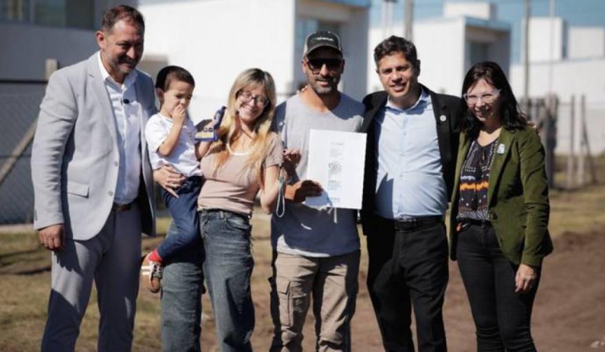 El gobernador de la provincia de Buenos Aires, Axel Kicillof, encabezó este viernes el acto de entrega de 38 viviendas para familias del municipio de Lincoln, junto a la ministra de Hábitat y Desarrollo Urbano, Silvina Batakis; y el intendente local, Salvador Serenal.