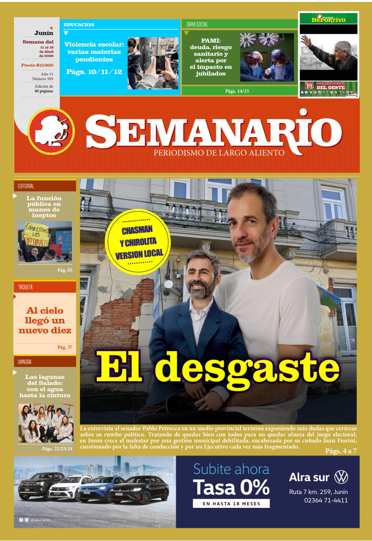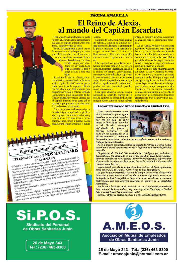 PÁGINA DE HUMOR PUBLICADA EN LA EDICIÓN IMPRESA Y LA EDICIÓN DIGITAL Nº 509 DE SEMANARIO DE JUNÍN. SEMANA DEL 11 AL 17 DE ABRIL DE 2026