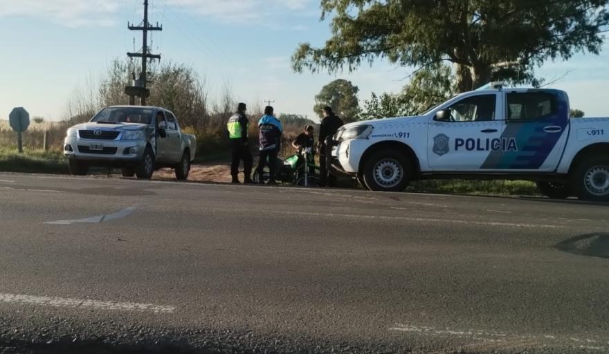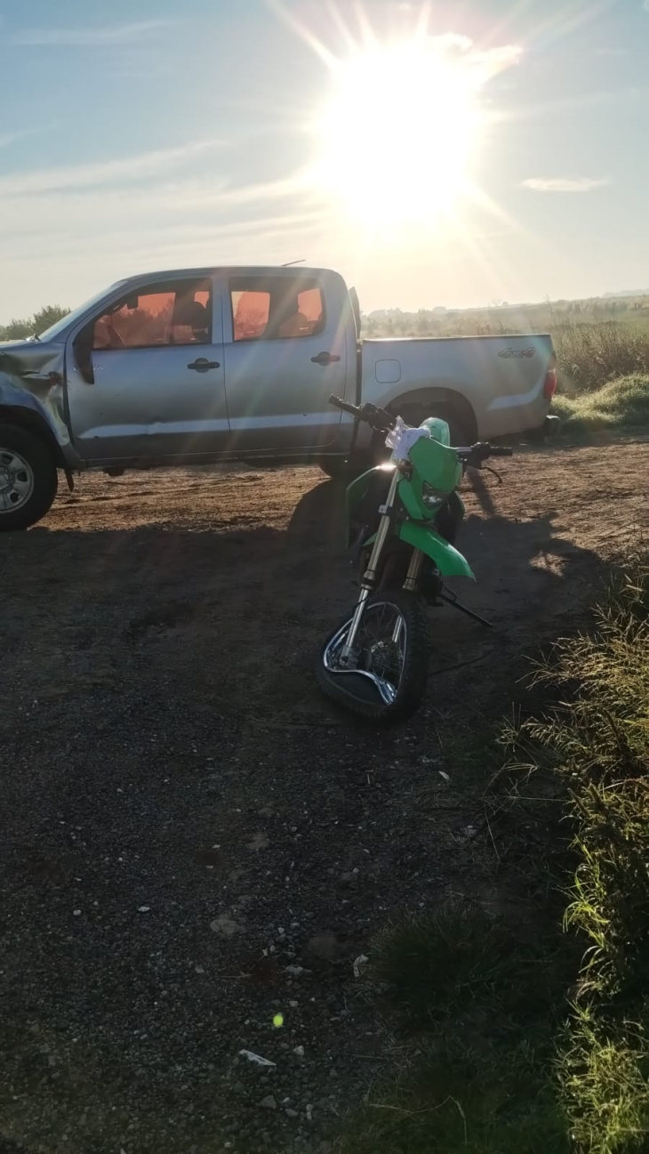 El siniestro ocurrió alrededor de las 8 de este lunes en el kilómetro 155 de la ruta nacional 199 y por causas que se investigan la Pick Up Toyota, conducida por Federico Guimar Zielke, de 40 años chocó a la moto Motomel, que circulaba por la ruta en sentido descendente (Junín a Pergamino).
