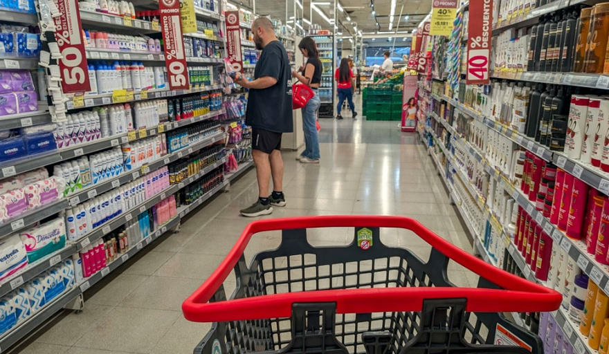 Góndolas en stand by. A pesar de las promociones de empresas, autoservicios y entidades financieras, las compras de productos básicos continúan cayendo