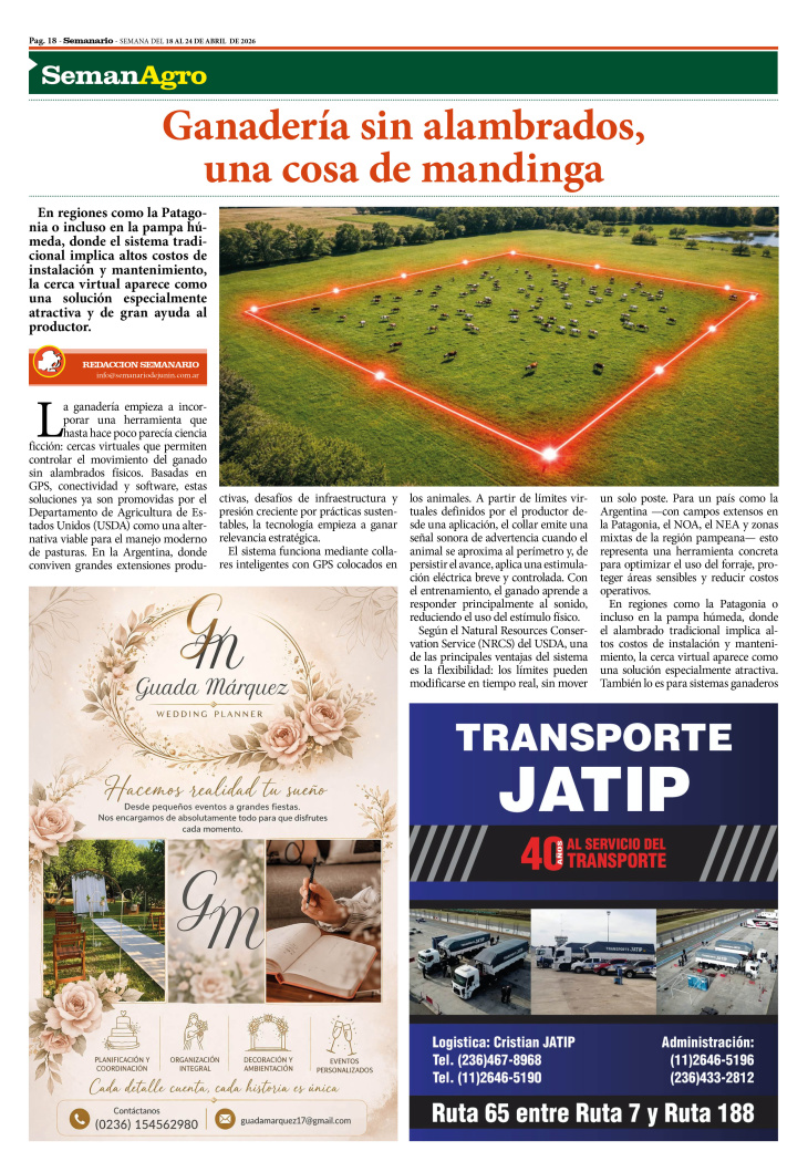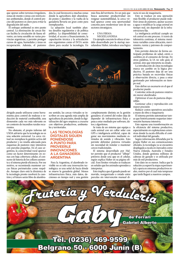SECCIÓN SEMANAGRO PUBLICADA EN LA EDICIÓN IMPRESA Y EDICIÓN DIGITAL Nº 510 DE SEMANARIO DE JUNÍN. SEMANA DEL 18 AL 24 DE ABRIL DE 2026