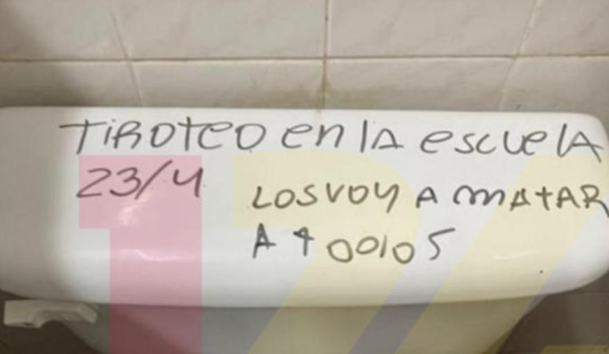 Si bien trascendió de otros establecimientos, las versiones no pudieron ser confirmadas pero en donde sí pasó fue en la Escuela Secundaria 7. Según trascendió, cuando se  el personal de limpieza se preparaba para limpiar las instalaciones, encontraron en uno de los baños, el texto: “Tiroteo en la escuela 23/4 Los voy a matar a todos”.